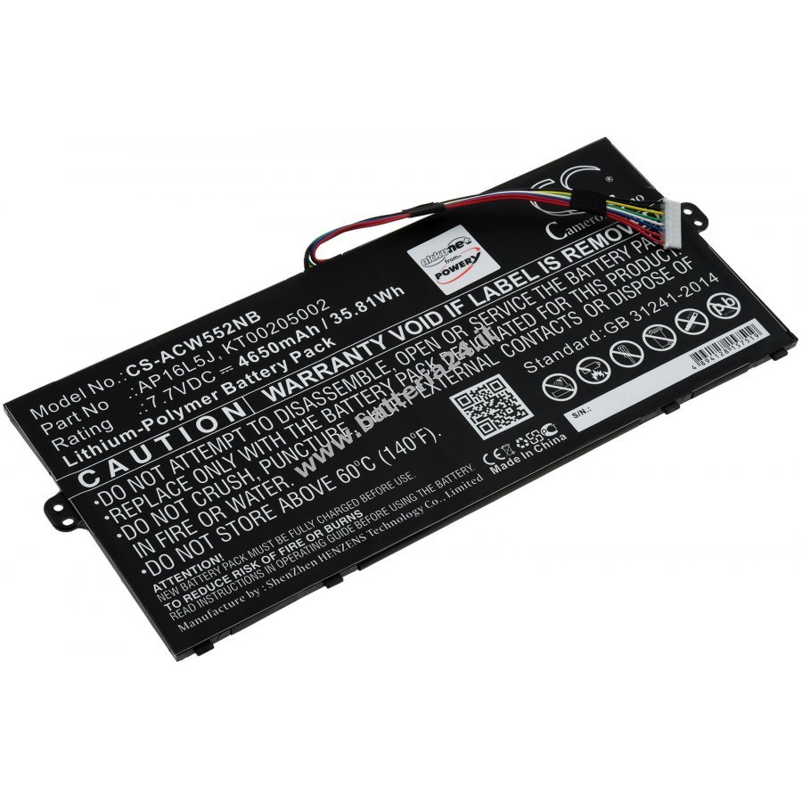 7,7V 4650mAh/35,8Wh Li-Polymer Nero 221,58mm x 94,94mm x 4,00mm DE 31298618