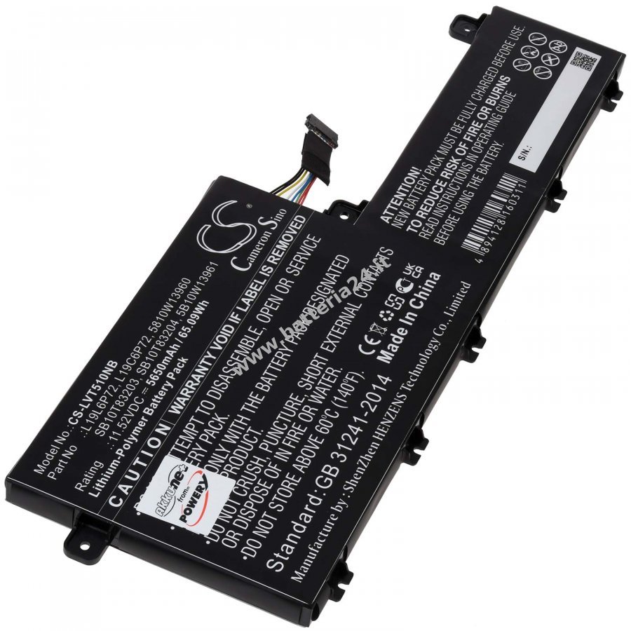 11,52V 5650mAh/65Wh Li-Polymer Nero 253mm x 90mm x 9mm DE 31298618